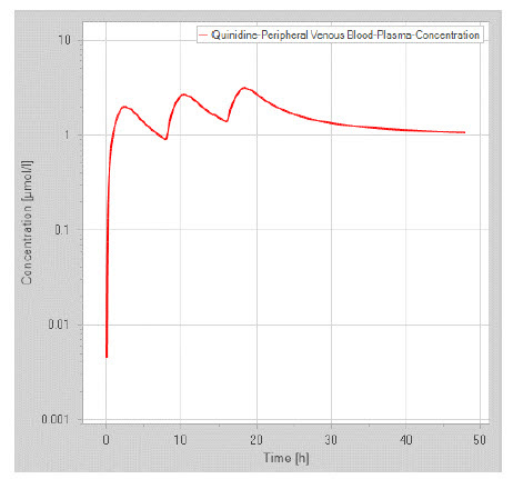 7. Guentert, T. W., Holford, N. H., Coafes, P. E., Upton, R. A., & Riegelman, S. (1979). Quinidine pharmacokinetics in man: choice of a disposition model and absolute bioavailability studies. Journal of pharmacokinetics and biopharmaceutics, 7(4), 315-330. 8. Maeda, K., Takano, J., Ikeda, Y., Fujita, T., Oyama, Y., Nozawa, K., ... & Sugiyama, Y. (2011). Nonlinear pharmacokinetics of oral quinidine and verapamil in healthy subjects: a clinical microdosing study. Clinical Pharmacology & Therapeutics, 90(2), 263-270.