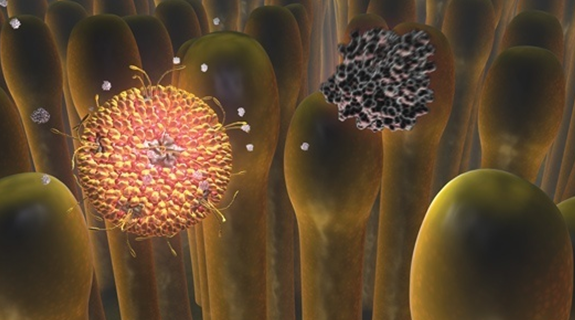 A member of the rhabdoviridae family, vesicular stomatitis virus (VSV) is a negative sense single-stranded RNA virus that is highly sensitive to the antiviral IFN response. This acute sensitivity to IFN-induced changes effectively blocks infection of the virus in normal cells. It also makes the virus an ideal naturally oncolytic agent as cancer cells often have a eregulated IFN response, allowing for uninhibited VSV replication. In addition, tumor cells with defects in Ras, p53 or Myc signaling pathways have been shown to be permissive to VSV. VSV is an animal pathogen, which can also infect humans. In humans, VSV infections are usually asymptomatic, but it can cause flu-like symptoms, raising some concern about using the virus as a cancer therapeutic in its naturally isolated state. Because the original observations that a laboratory VSV isolate (strain Indiana) efficiently infects and kills tumor cells in vitro and in vivo, natural mutants and engineered versions have been isolated with improved oncolytic cancer-killing capabilities and tumor specificity. For example, the HSV thymidine kinase gene has been incorporated into the VSV genome. This suicide cassette is designed to enhance killing of VSV-infected tumor cells and also uninfected neighboring tumor cells through the “bystander effect.” In another example, interleukin-4 cDNA was incorporated into the VSV genome in order to enhance anti-tumor immunity. Using an antibody binding domain, Bergman et al. engineered a VSV variant that could arget Her2/neu overexpressing cells, which is most typical of breast cancers and plays an important biologic role in breast CICs. Naturally isolated VSV variants AV1 and AV2 have mutated matrix (M) proteins (responsible for blocking IFN induction in infected cells), and are further attenuated for replication in normal cells but still retain full cancer-killing ability. This finding led to engineered versions such as recombinant VSV ΔM51, which has reduced toxicity but is highly effective at targeting various primary and metastasized tumors in vivo. Numerous studies have convincingly shown the ab