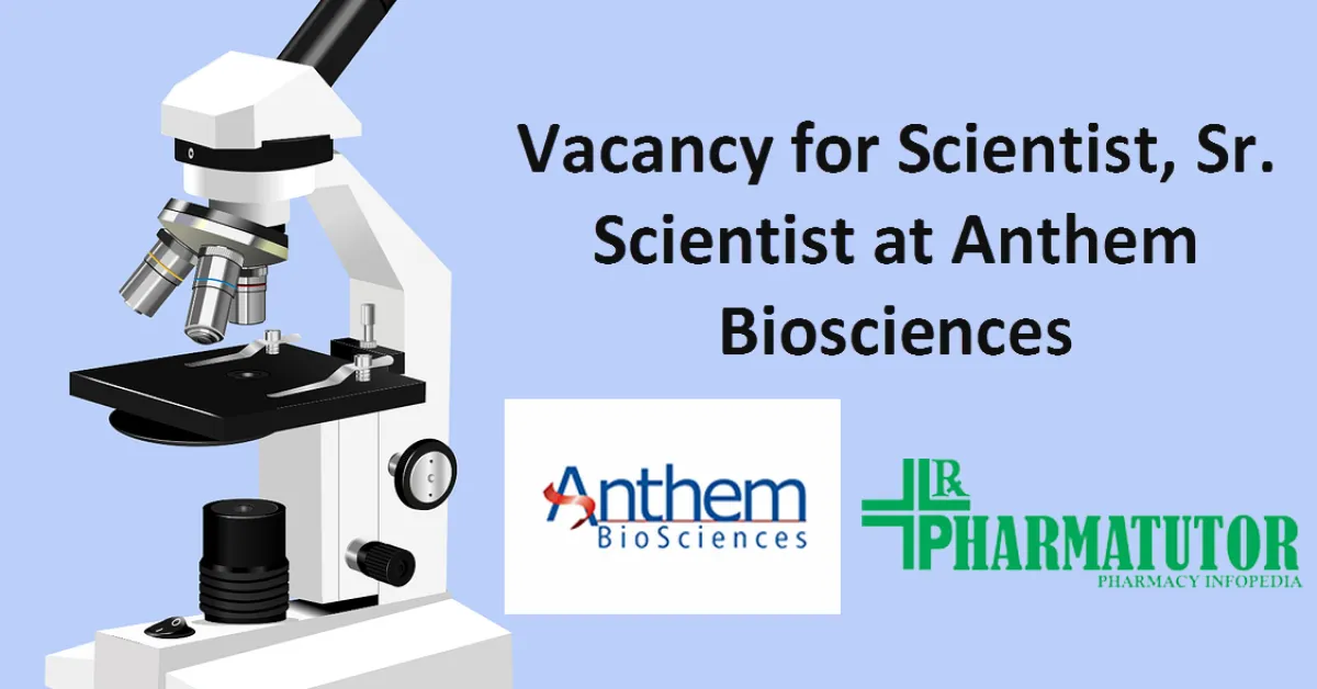 • Education : M.Pharm / M.Tech / MSc- Biotechnology / Biochemistry / Analytical Chemistry / Chemistry.