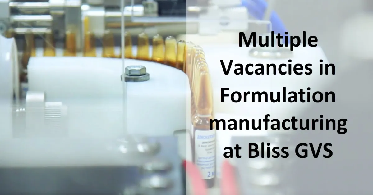 Experience: - 2 to 4 yrs in Pilot area such as Granulation / compression / coating section.