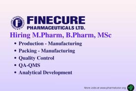 M.Pharm / B.Pharm / M.Sc for Injectable Manufacturing at Amneal Pharma. Experience in bulk manufacturing/aseptic filling, control/aseptic area operation, vessel operation including CIP/SIP process handling, machine operation.