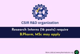 Bachelors degree in Pharmacy or M.Sc with 1st Class or equivalent GPA in the area of Chemistry / Life Science. CSIR the premier industrial R&D organization in India