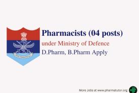 • Openings for Pharmacists (3 Posts) under Ministry of Defence