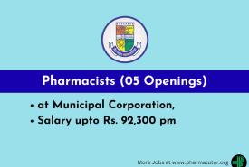 Openings for D.Pharm, B.Pharm, M.Pharm at Municipal Corporation - 09 Openings