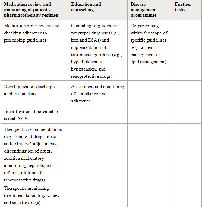 Comprehensive listing of clinical pharmacy activities performed in CKD and ESRD patients