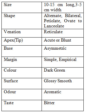 MACROSCOPICAL STUDIES OF LEAF & FRUIT (Patel J et al., 2008)