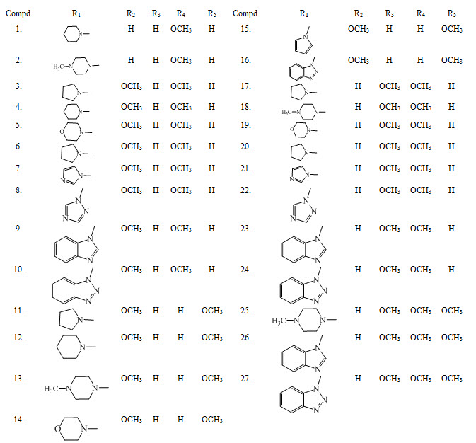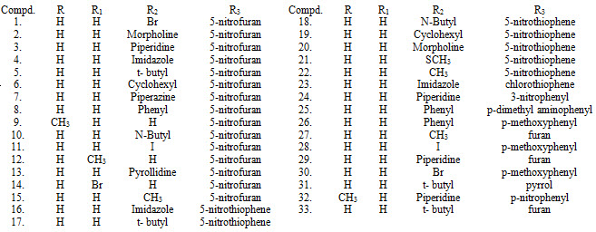 R = H, Cl; Ar = C6H5, p-C6H4NO2, p-C6H4Cl, p- C6H4OH, p- C6H4OCH3, p- C6H4CH3, p- C6H4N(CH3)2, p- C6H4N(C2H5)2, furyl, thiophene