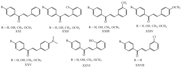 Suvitha Syam and his co-workers have synthesized chalcones XXI, XXII, XXIII, XXIV, XXV, XXVI, XXVII having anticancer activity. (Suvitha et al., 2012)