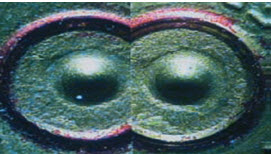 Images of two bullets casings as seen through a comparison microscope