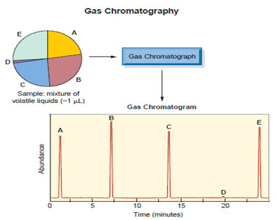 Gas chromatography helps to determine the components of a mixture each spike represents different component of mixture .The relative heights tell relative abundance of each component. Thin-layer chromatography (TLC), gas chromatography (GC), and high- performance liquid chromatography (HPLC) are commonly used in forensic laboratories. Unlike GC, HPLC can take place at room temperature.Therefore, HPLC can be used to test for the presence of flammable materials, such as explosives or accelerants.