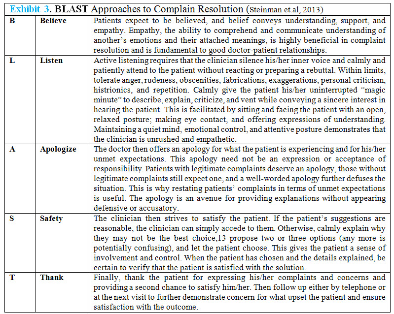 87. Steinman HK. (2013); A method for working with displeased patients-blast. J Clin Aesthet Dermatol; 6(3):25-8