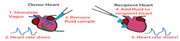 Loewi's experiment proving that neurotransmision was chemical, rather than electrical.