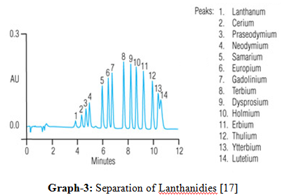 Solution having mixture of lanthanides is passed through a column packed with particles of a suitable ion exchange resin. Cations present in solution undergo exchange with hydrogen with hydrogen ions [12, 16, and 17].