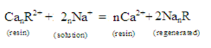 Resin - SO3H + Na+----------------->Resins - SO3Na + H+