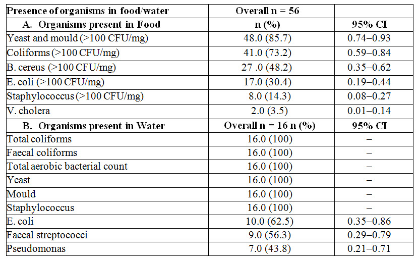 Table 6. Detection of foodborne pathogens in food and household water samples collected at point of use from four slums of Dhaka city, Bangladesh, December 2015 to May 2016.