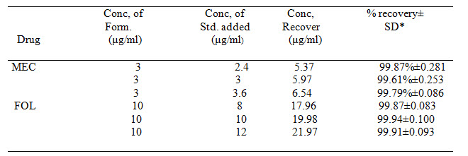 *=Average result of six replicate samples (Meclizine and Folic acid)