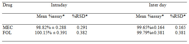 *= Average result of six replicate samples (Meclizine and Folic acid)