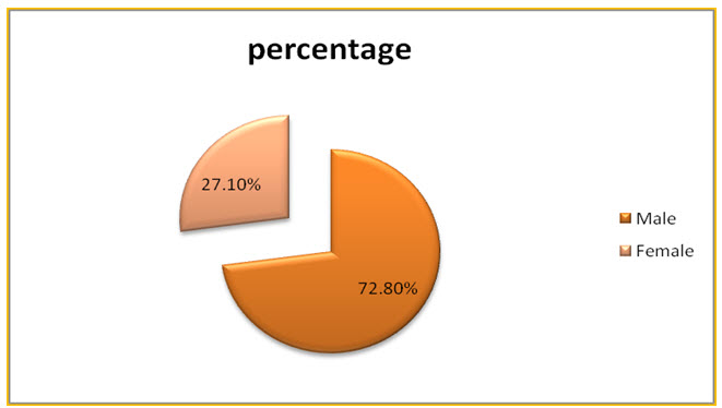 The sex wise distribution resulted that majority of the patients were of male sex which was as high as 72.80%. The females accounted for around 27.10%. Whereas in the study conducted previously males where more prevalent 69 (69%) and 31 (31%) females (Neethu Joseph et al., 2017). This only confirmed the finding of the previous study conducted that males accounted for the majority of the disease burden.
