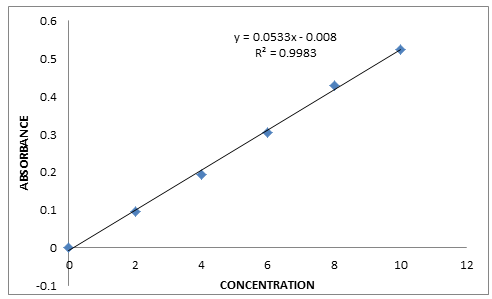 PROCEDURE FOR THE DEVELOPMENT OF CALIBRATION CURVE OF GLIBENCLAMIDE:- A stock solution of Glibenclamide (1mg/1ml) by dissolving 100mg standard drug in 100ml of distilled water. From this stock solution, 0.2,0.4,0.6,0.8,1.0 mg/ml concentrations were prepared by diluting with appropriate quantities of distilled water. Its λmax was analysed using Uv-Spectrophotometer(Perkins) at 340nm. The prepared solutions were measured at 340nm. The standard curve between Concentration (vs.) Absorbance was plotted.
