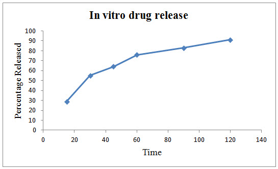 In vitro release of the developed formulation was studied and presented in Figure 1. The release rate of the polyherbal formulation showed a maximum cumulative release of 91 % at the end of the study (120 min.)