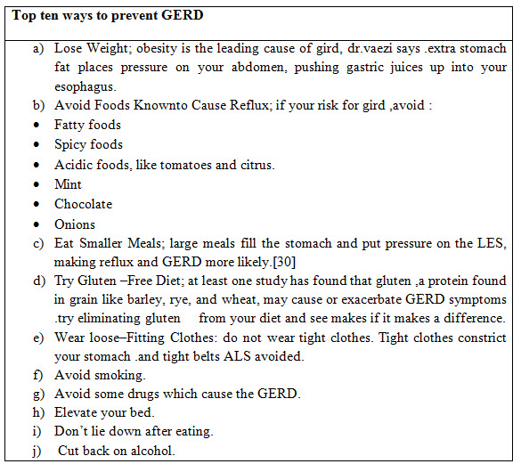 Table no-2: prevention of GERD ((https://truhealthmedicine.com  , Chourasia D,2011 Ghoshal UC,2010)