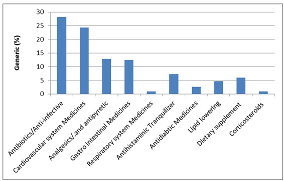 Figure 2. Generics (%) for the studied medicines of different pharmacological categories.