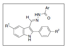 Vogel et al.13 synthesized 2-phenylindole-3-carbaldehydes by from hydrazides of benzoic acid and pyridine carboxylic acids. The compounds inhibited growth of two cell lines viz. MDA-MB 231 and MCF-7 breast cancer cells with IC50 values of 20–30 nM for most active derivatives