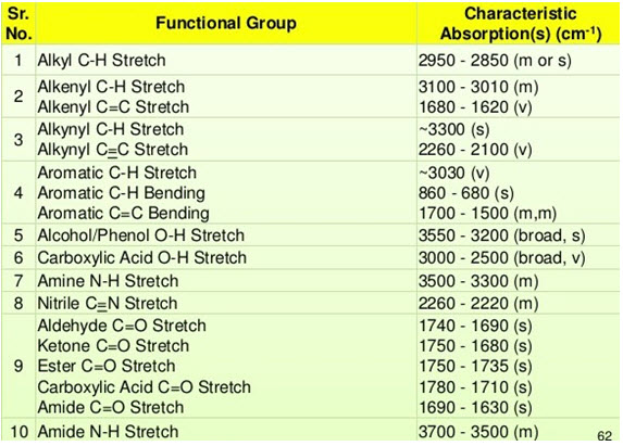 • Absence of band of a particular group indicates absence of that group in the compound.