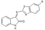 Hoyun Lee et. al., reported the hybrid pharmacophore design and synthesis of isatin benzothiazole analogs (13). All examined compounds were quite effective on all the cancer cell lines examined. The compounds 4-bromo-1-diethylaminomethyl-1H-indole-2,3-dione and 4-chloro-1-dimethylaminomethyl-3-(6-methyl-benzothiazol-2-ylimino)-1,3-dihydroindol-2-one emerged as the most active compounds of this series (Hoyun L et. al., 2009).