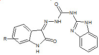 Abadi et. al., reported the synthesis of 3-substituted-2-oxoindoles (14). Compounds were tested for potential antiangiogenic properties, and also tested for in vitro antitumor properties against MCF7 (breast), NCI-H460 (lung) and SF268 (CNS) cancer cell lines (Ashraf H Abadi et. al., 2006).
