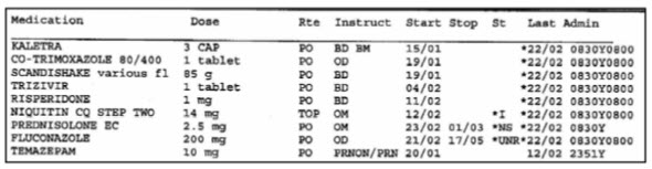 Fig : 4. A current medication record showing scheduled and actual administration times