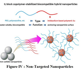 Non-Targeted Nano-particles: Non-targeted nano-particles circulating in the blood have been shown to significantly improve drug bioavailability and accumulation in tumors through the enhanced permeability and retention effect. In general, hydrophobic drugs released extra-cellularly will diffuse and be taken up by cancer cells, leading to enhanced tumor cytotoxicity [8]. Since cancer cell populations, cell density, antigen expression, microenvironment, and vasculature density are significantly different across different cancers and even within primary and secondary metastatic sites, nano-particles bio-distribution and circulation time represent critical parameters for cancer therapy. Multiple factors affect the pharmacokinetic behavior of nano-particles, but the surface charge, size, nano-particle shape and stealth properties are among the most vital (Figure:IV).
