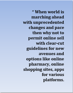 Coming back to title of the article. Online pharmacy and online shopping sites offer some discounts, which may not be a welcome move from view point of brick and cement stores (nearby medical shops). Discounted medical shops and home delivery by few medical shops is recently a new concept and it has been taken hand to hand by customers. For instance if I talk about my city Indore, the industrial capital of Madhya Pradesh, there is a fabulous concept launched by managing director K. P. Singh (Oxygen Life Care) led organization, which is supported by Red Cross Society and approved by Local administration of Indore. The shop is being run under the“ When world is marching ahead with unprecedented changes and pace then why not to permit online sell with clear-cut guidelines for new avenues and options like online pharmacy, online shopping sites, apps for various platforms. PPP mode and was opened under the ‘Arogya’ scheme of the central government. Around twenty five shops are going to be opened in Indore and nearby regions. These are called discounted Arogya Medical Shops. These shops offer heavy discounts (20 to 75 %), something which has never been seen or heard of by Indore’s citizens. As expected other retailers opposed this move because these shops are offering such a big discount and news was also that Indore’s wholesale medicine market did not supply medicines to these shops. Nonetheless, Singh is managing his initial shop (others are in pipeline) with certain hitches, thanks to opposition and boycott from lobby.