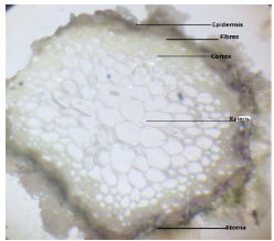 4. In microscopic studies, the transverse sections of stem the epidermis as single layered..Parenchymatous cell are in many layered and compactly packed were found. Collenchyma were present