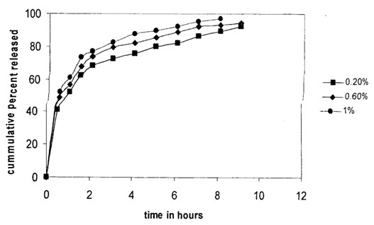 From the release kinetics table if can be observed that the release of salbutamol sulphate from the ethylcellulose microsphere exhibit diffusional characteristics and closely follows higuchi model and also highly correlated with first-order release model.