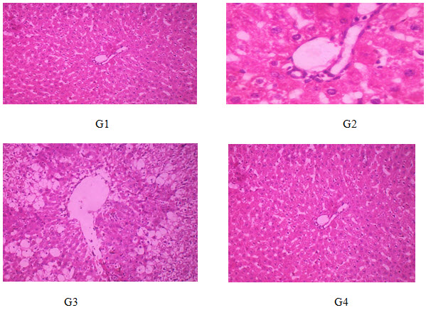 Histopathology of brain G1 – normal control rats were treated with vehicle. G2 – toxic control rats were treated with lead at a single dose 0.1 ml/100 g body weight i.p.G3 – rats were treated with Ziziphus Jujuba 250 mg/kg body weight p.o.G4 – rats were treated with Ziziphus Jujuba 500 mg/kg body weight p.o