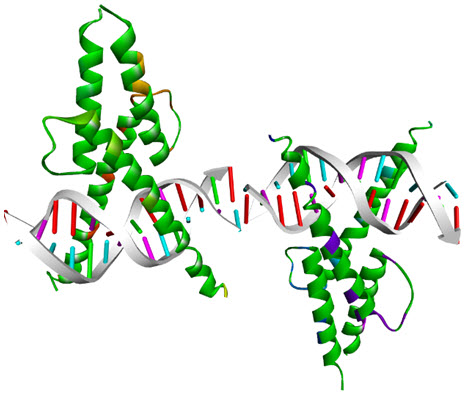 Figure 7.Schematicrepresentation of c-Fos/c-Jun heterodimer complexed with DNA (PDB 1FOS)
