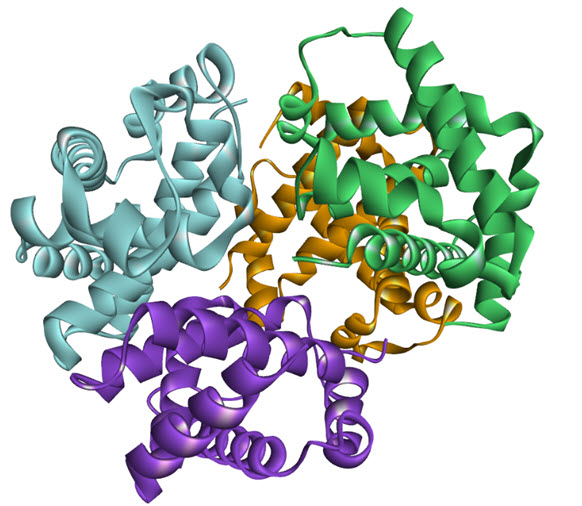 Figure 1. Homo oligomerization of haemoglobin tetramer (PDB: 1GZX)[9]