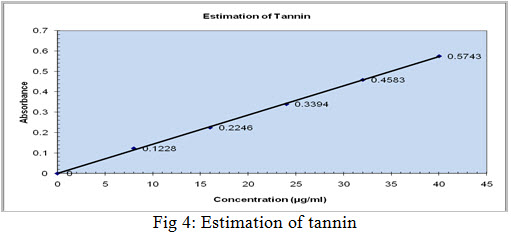 Tannins are positively reported in ethanol extract,which shows a blue colour at 640nm and the yield was found to be 19% in ethanol extract.The results were shown in Table no.2 and Figure no.4.