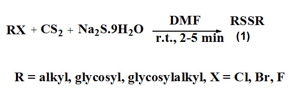 Bhaumik et al., 2017 synthesized symmetrical disulfides involving rapid conversion of alkyl halides into disulfides (1) by reaction of sodium sulfide and carbon disulfide in DMF at room temperature.
