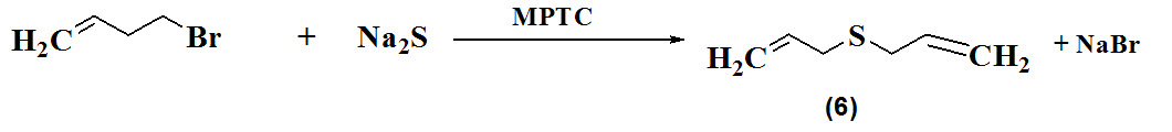 Selvaraj et al., 2016 synthesized diallyl sulfide (6) using ultrasound assisted multisite phase transfer catalyst 1,3,5,7-tetrabenzylhexamethylenetetraammonium tetra bromide (MPTC) which was prepared by carrying out reaction between hexaethylenetetramine and benzyl bromide in presence of ethanol.