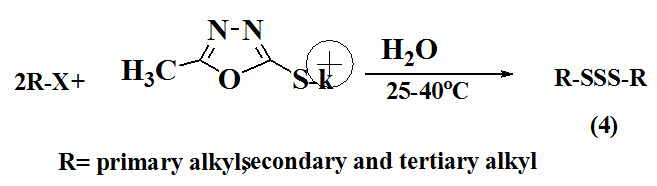 Mohammadi and Beigi 2016 proposed simple and green method for synthesis of symmetrical trisulfides (4) from alkyl halides in water and using PMoxt as a sulfur donor.