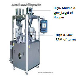 • Sampling can be performed directly from the capsule filling machine for various challenge tests such as but not limited to variation in speed of the capsule filling machine, from high, middle and low level of powder in the hopper of the capsule filling machine.