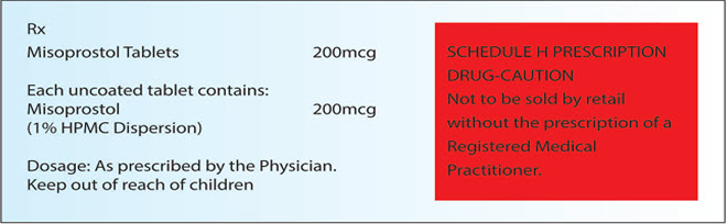 (b) if it contains a drug substance specified in Schedule H, be labeled with symbol Rx and conspicuously displayed on the left top corner of the label and shall also be labeled with the following words in legible black coloured font size in completely red rectangular box: (Ministry of Health and Family Welfare G.S.R. 408 (E).)