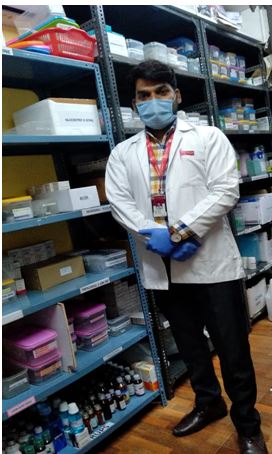 Mr. Mohan Kumar Sharma : Posted at OPD Pharmacy Fortis vadant Kunj hospital Delhi and serving the patient during corona epidemic.