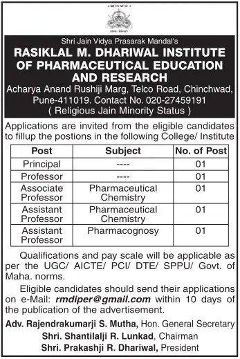 Qualifications and pay scale will be applicable as per the UGC/ AICTE/ PCI/ DTE/ SPPU/ Govt, of Maha. norms.