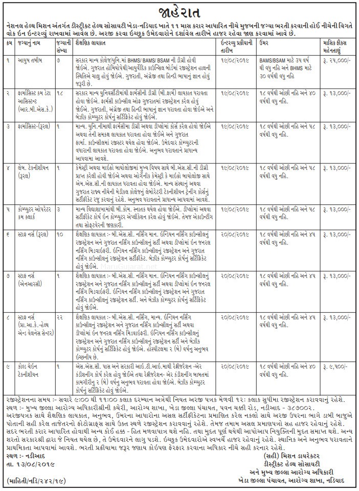 No of posts : 02 (Mahemdavad - 01, Kanjari - 01)
