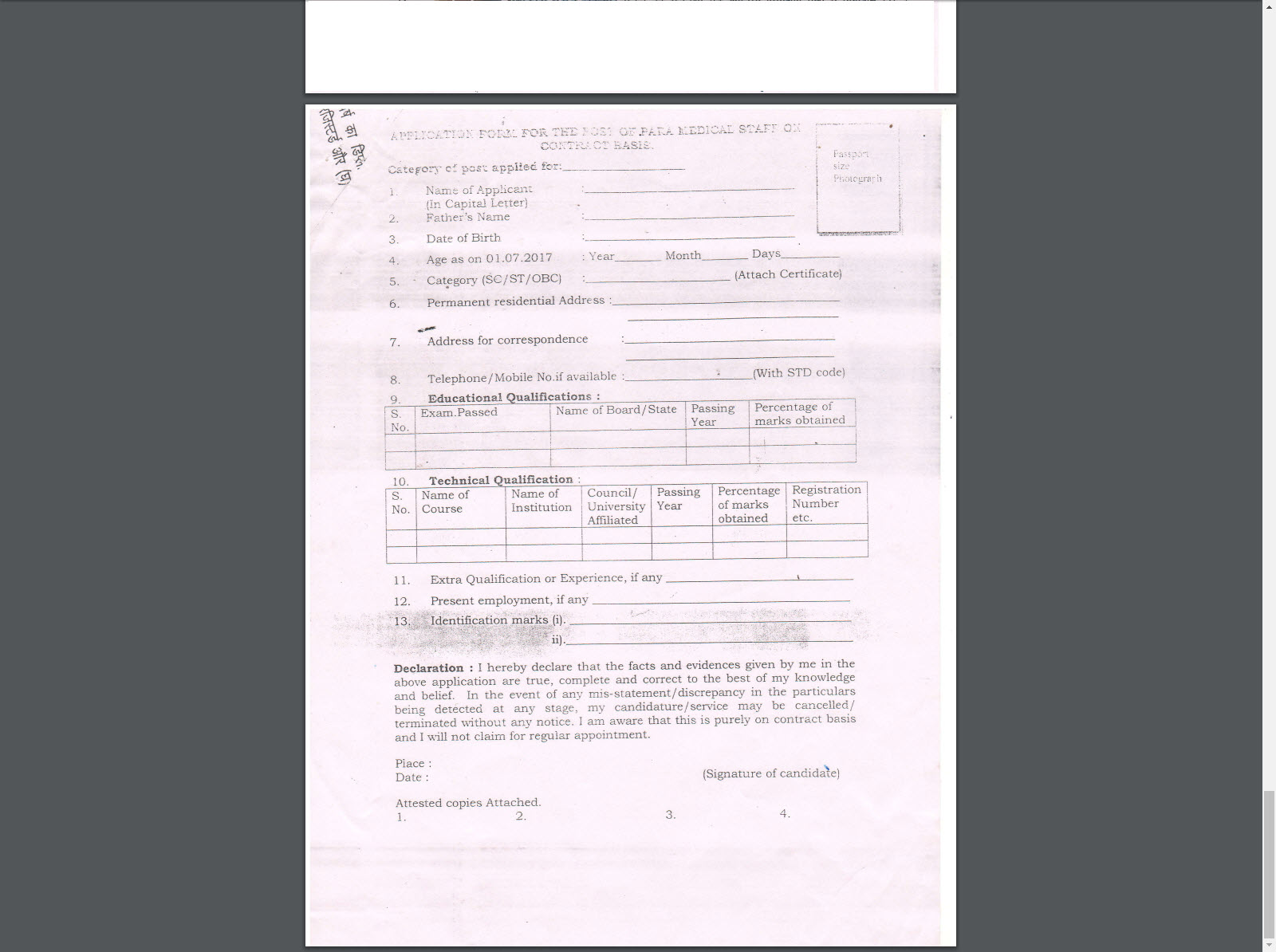Educational Qualificaton: 10+2 in Science or equivalent with Diploma in Pharmacy and registration with Indian Pharmacy Council or State Pharmacy Council (enclose certificate).
