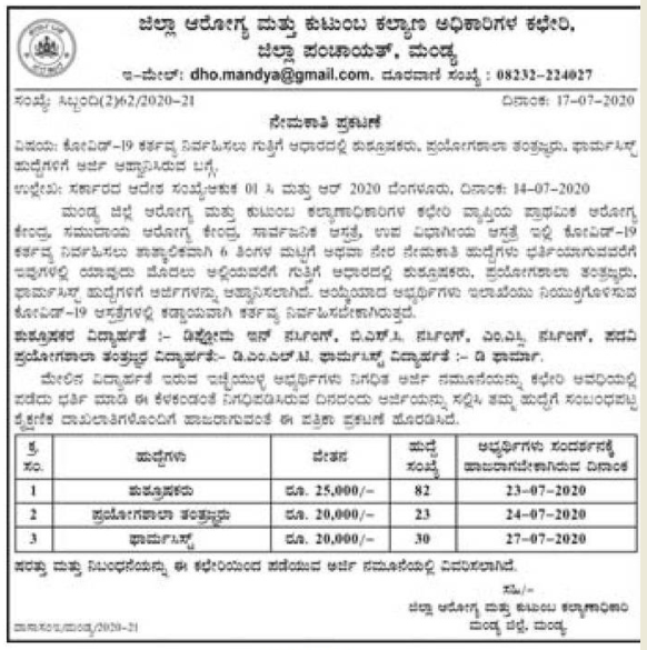 Venue : Office of Mandya District Health and Family Welfare Officers, Zilla Panchayat, Mandya, Karnataka.