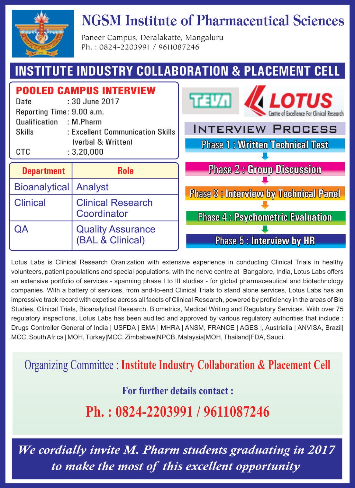 We cordially invite M. Pharm students graduating in 2017 to make the most of this excellent opportunity